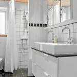 The holiday home comes with a bathroom with a shower.